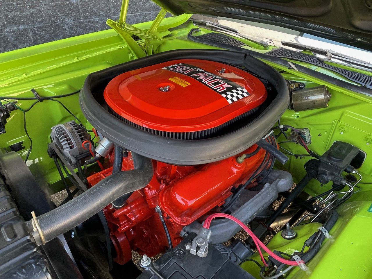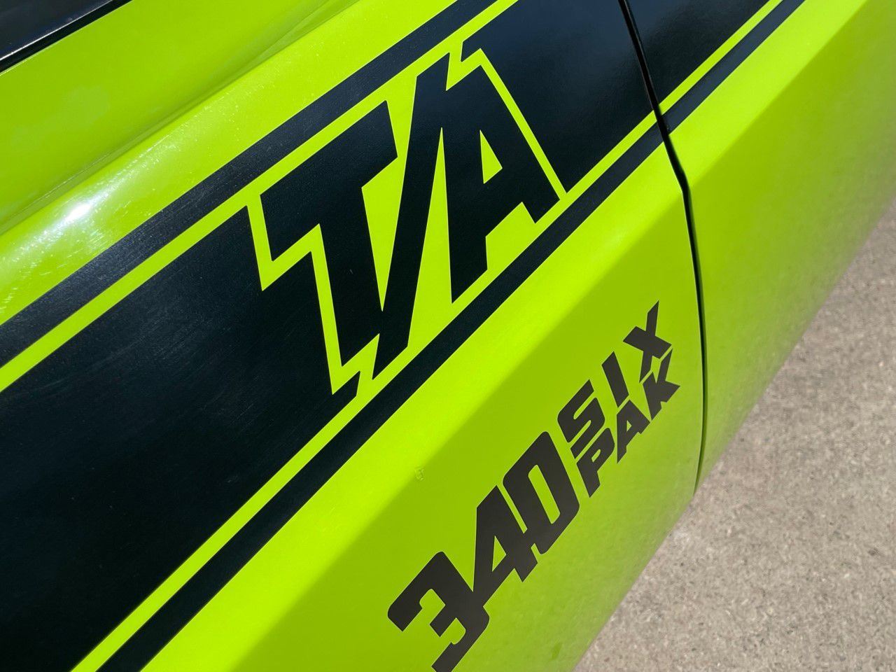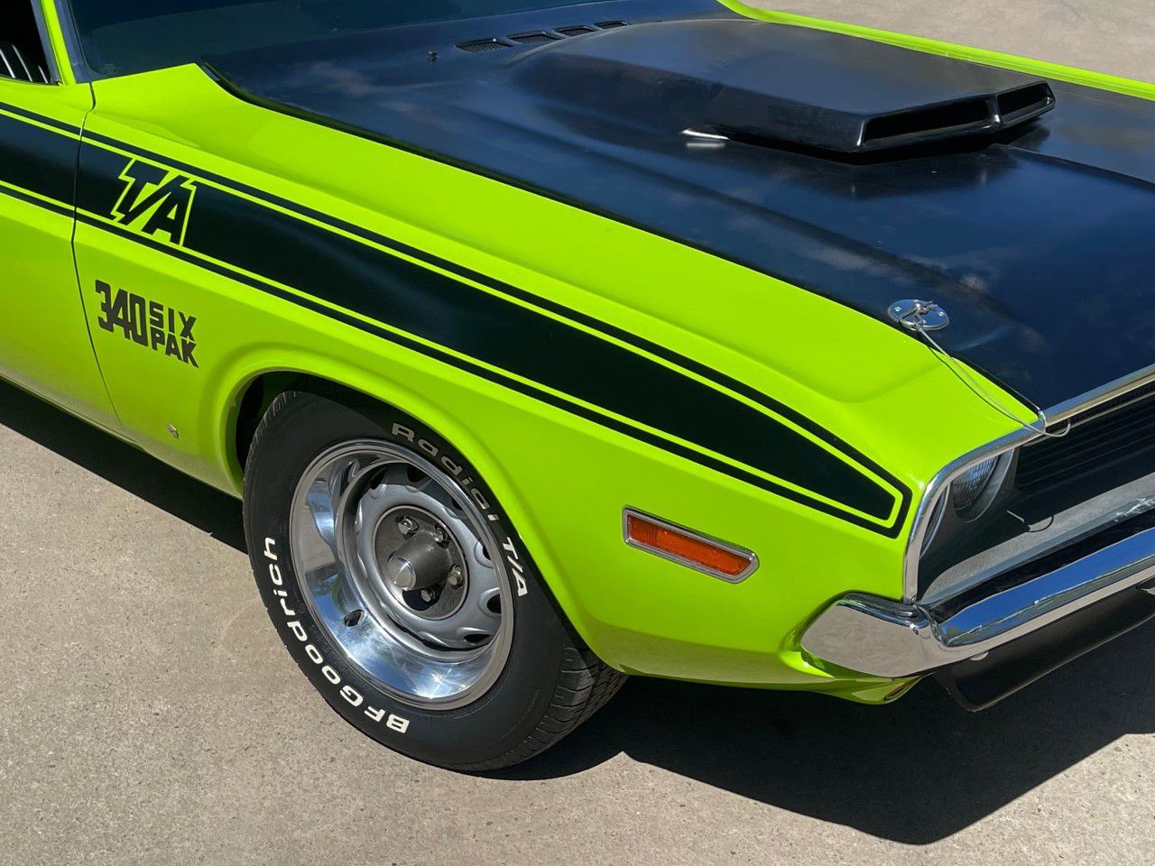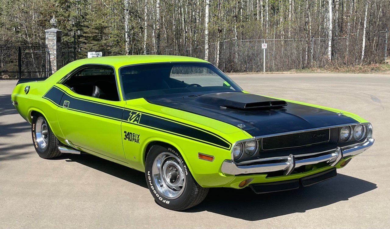 1970 Dodge Challenger, TA 340 6 pack. 4 speed manual transmission. This stunning 1970 Dodge Challenger complete restoration is beautifully finished in sublime green from top to bottom. The underside is painted body colour and the engine is detailed to show quality.