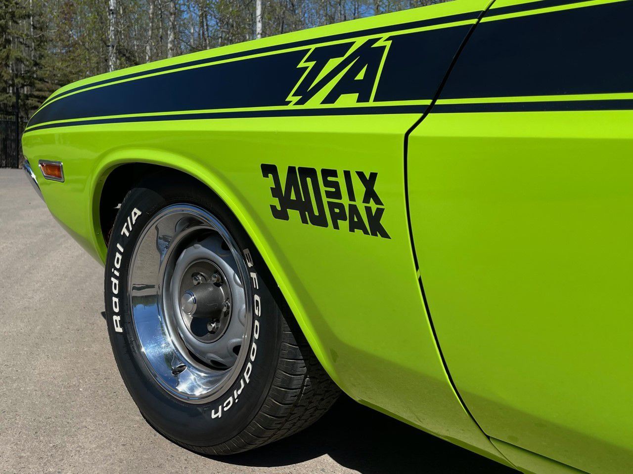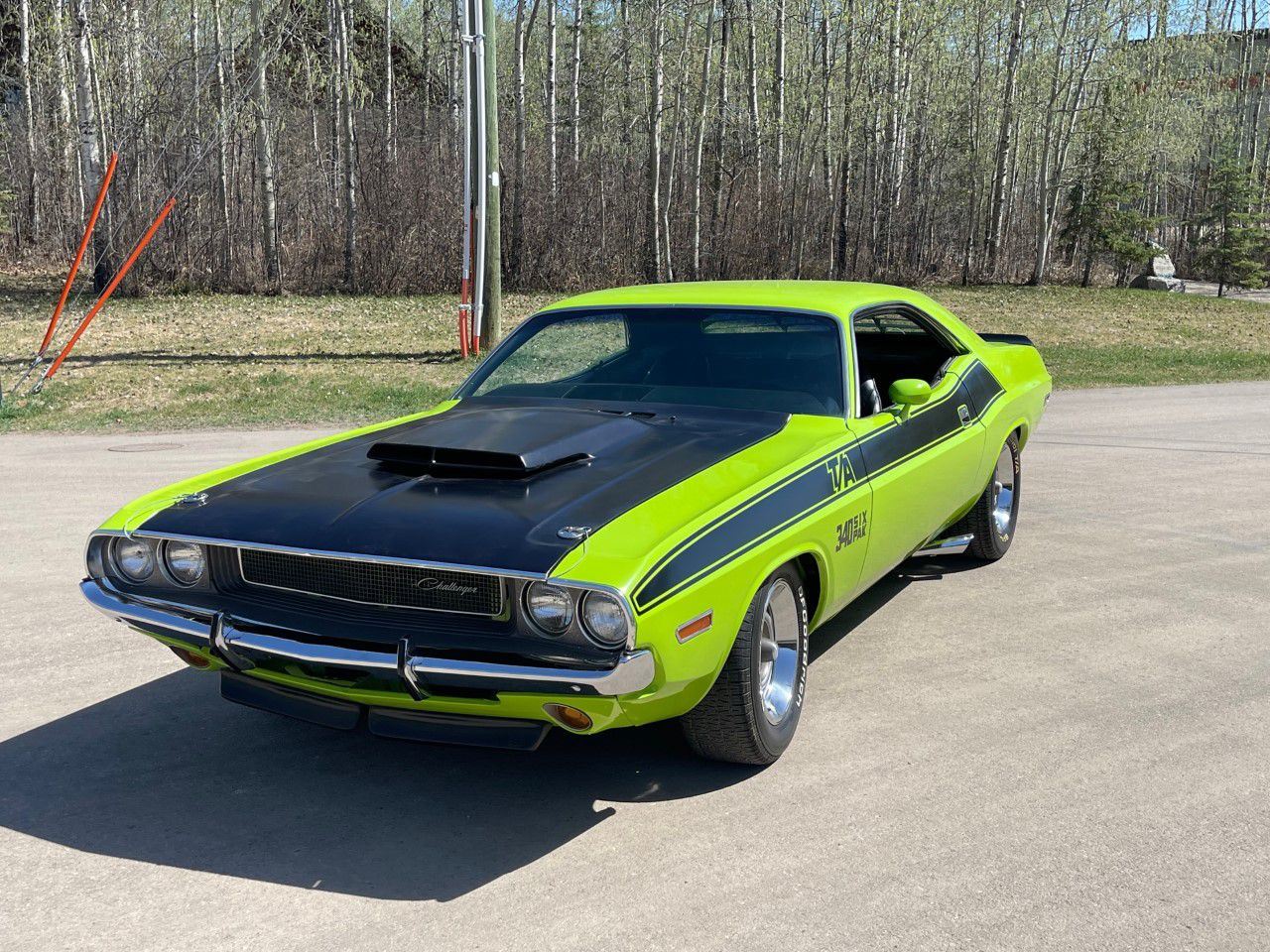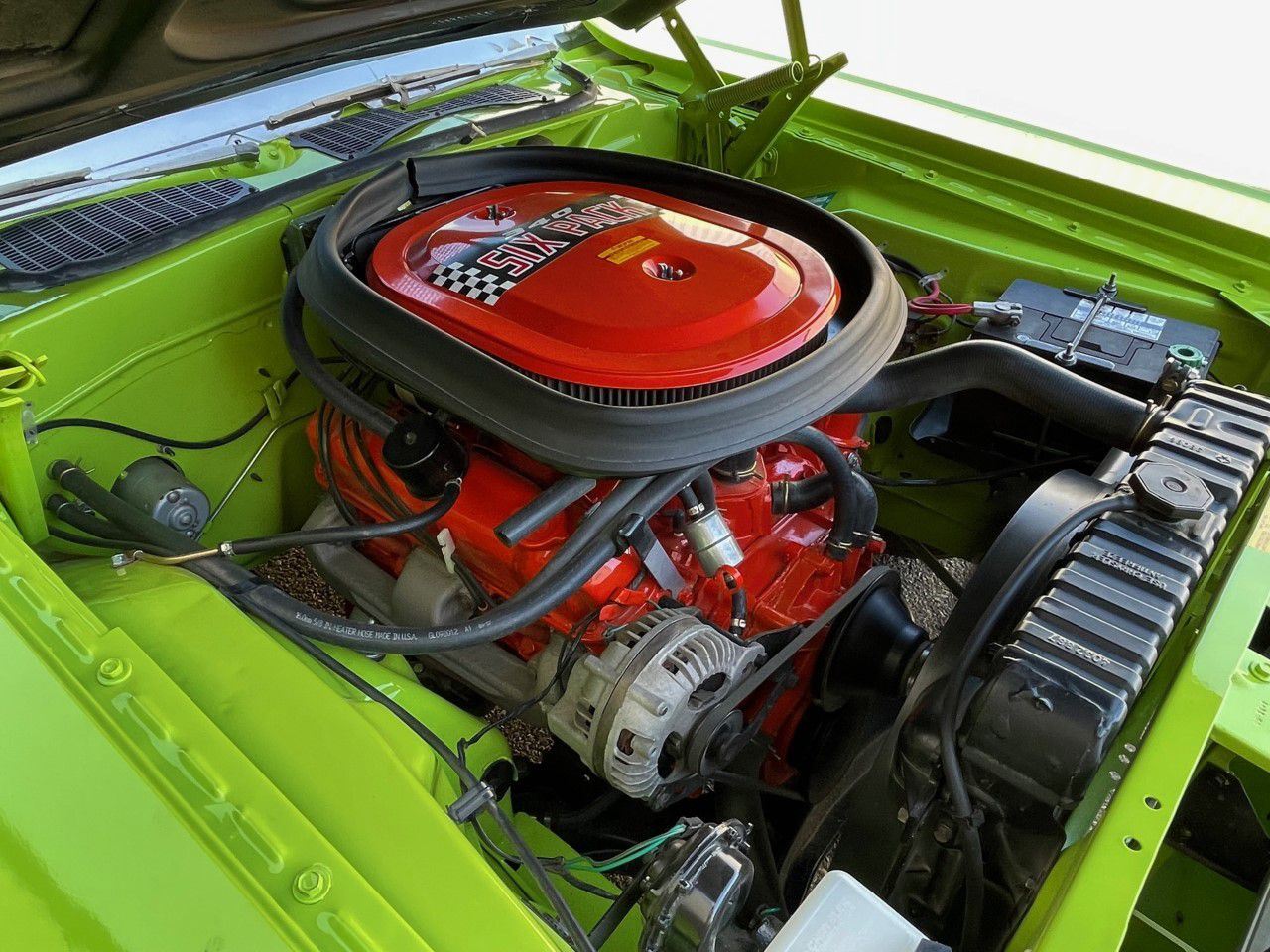 1970 Dodge Challenger, TA 340 6 pack. 4 speed manual transmission. This stunning 1970 Dodge Challenger complete restoration is beautifully finished in sublime green from top to bottom. The underside is painted body colour and the engine is detailed to show quality.