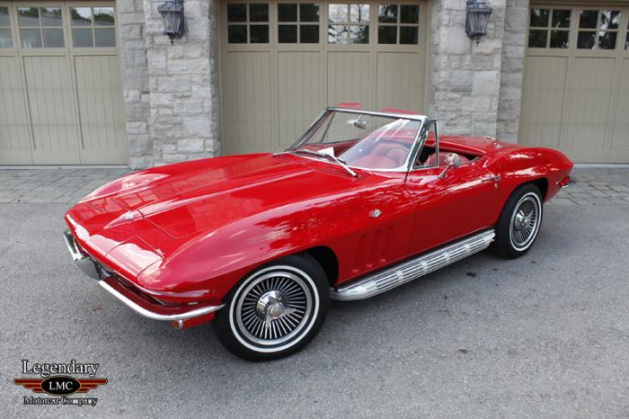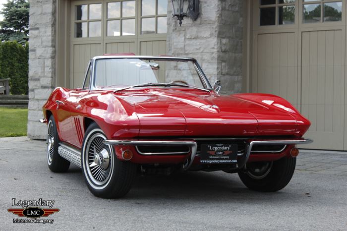 ONE OWNER DOCUMENTED58k ORIGINAL MILE #S MATCHING CORVETTE!! NOT ANOTHER LIKE IT. POWERED BY ITS ORIGINAL BORN WITH L-79 HIGH PERFORMANCE 327ci ENGINE WITH 4-SPEED TRANSMISSION AND POSI-TRACTION REAR END. HIGHLY OPTIONED INCLUDING POWER STEERING, POWER DISC BRAKES, POWER WINDOWS, TEAKWOOD WHEEL, AM/FM RADIO, 2 TOPS, KNOCK-OFF WHEELS WITH REDLINE RADIALS, SIDE MOUNT EXHAUST AND MUCH MORE. EXTENSIVE ORIGINAL OWNERSHIP DOCUMENTATION INCLUDING EDMONTON DON WHEATON BILL OF SALE/SALES INVOICE, BUSINESS CARD OF ORIGINAL SALESMAN, SERVICE AND PARTS RECEIPTS, LETTER FROM GM CANADA CONFIRMING DELIVERY DEALER AND DATE OF PRODUCTION, NCRS LETTER TO FURTHER AUTHENTICATE DELIVERY AND DEALER INFO, LICENCE PLATES, REGISTRATIONS, PICTURES WHEN NEW AND OVER THE YEARS AND MUCH, MUCH MORE. VERY RARE FACTORY TRIPLE RED COLOR COMBO. DEFINITELY, ONE OF THE FINEST DOCUMENTED EXAMPLES AVAILABLE AND NOT ANOTHER LIKE IT!