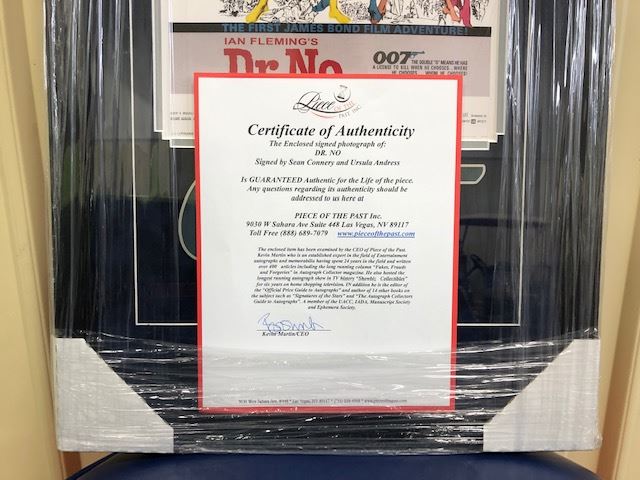 SIGNED PHOTOGRAPH OF DR. NO. AUTOGRAPHED BY SEAN CONNERY AND URSULA ANDRESS. COMES WITH COA