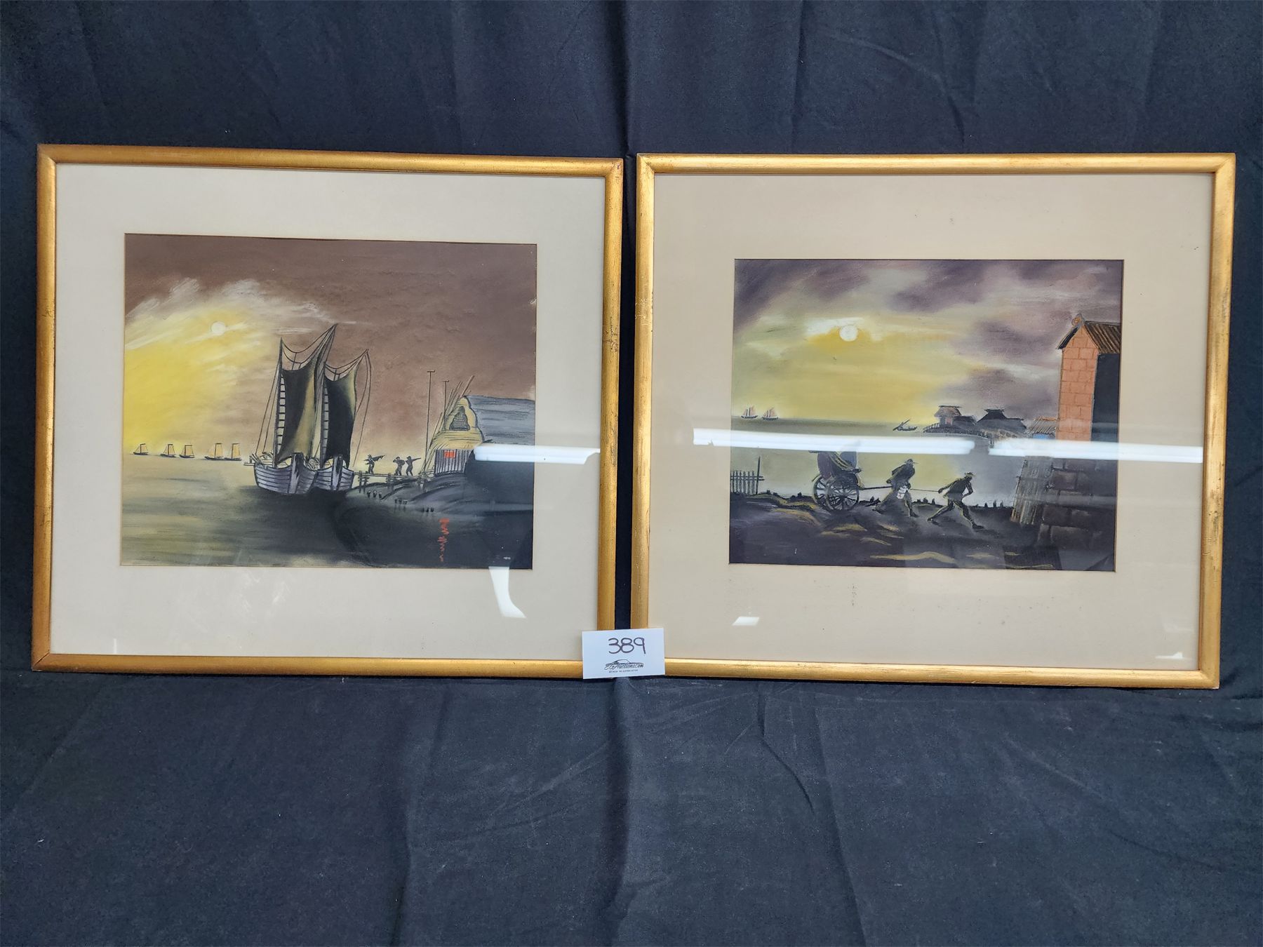 Two Gold Painted Wooden Framed Antique Paintings