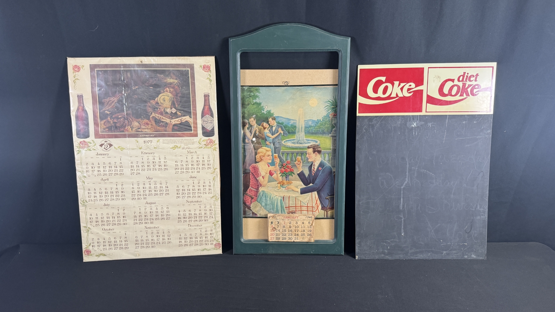 VINTAGE COCA-COLA CALENDARS & CHALKBOARD