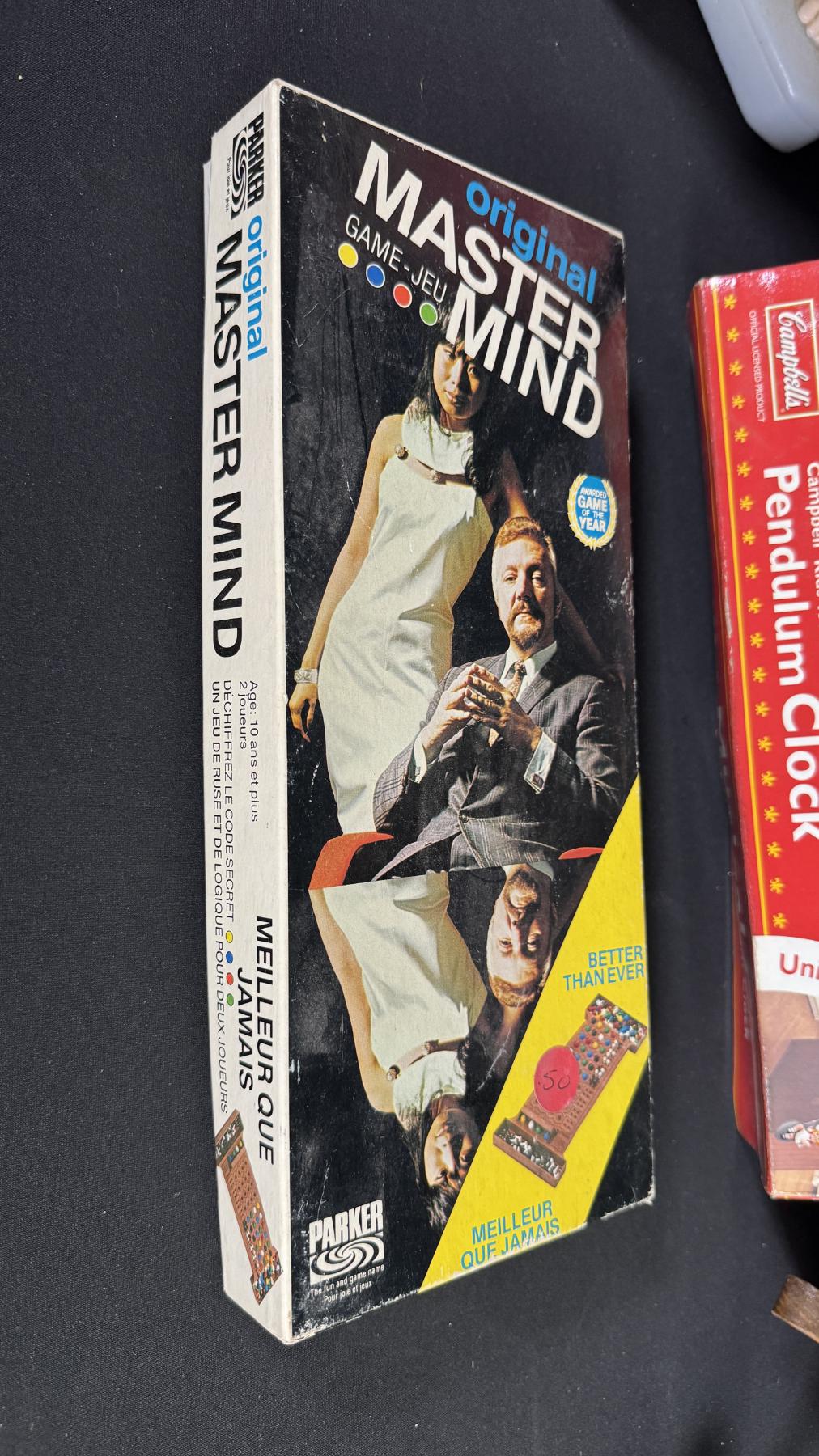 •Master Mind Game: The original Master Mind board game in a long box format. Box condition is good.