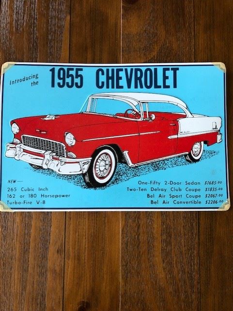 VINTAGE TIN SIGN INTRODUCING THE 1955 CHEV BELAIR