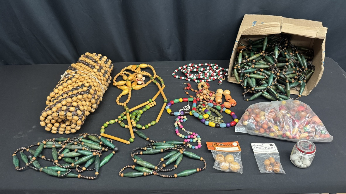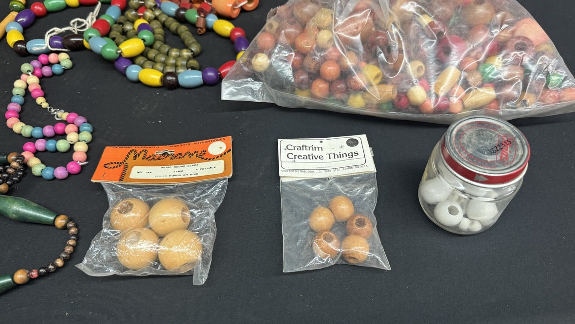 VINTAGE WOODEN BEADS, LOOSE BEADS, & CRAFTING SUPPLIES