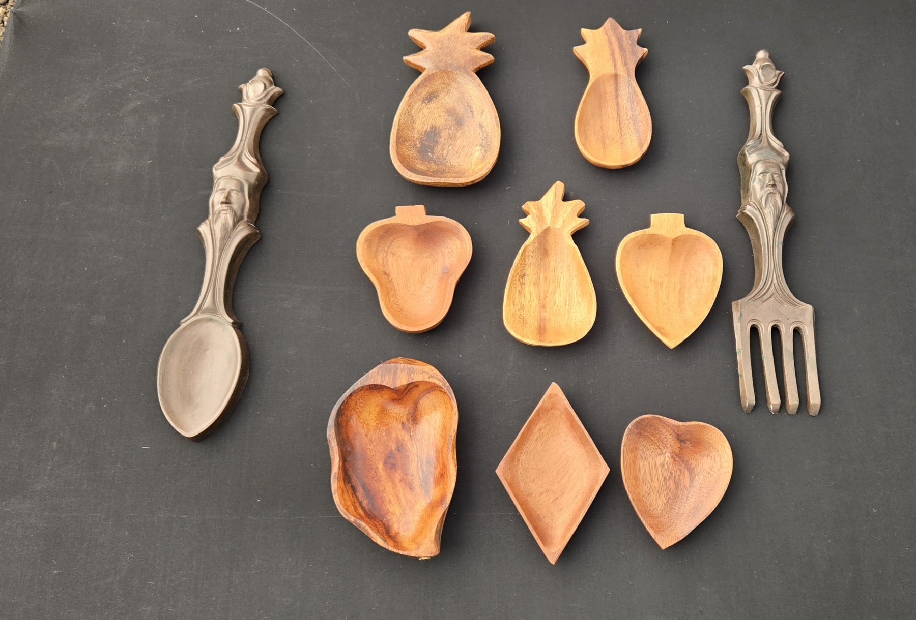WOODEN BOWL SET WITH SPOON AND FORK